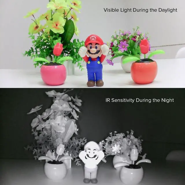 Day/Night Vision: IR-CUT Filter switched in and out automatically based on light condition (only visible light during the daylight and infrared sensitivity during the night with 850 IR LEDs on)