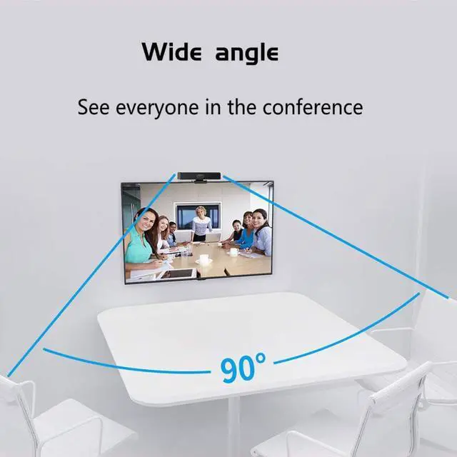 See all people in the meeting--- 90degree field of view enables everyone in the room to be seen, even people sitting close to the camera or at the edges of the room