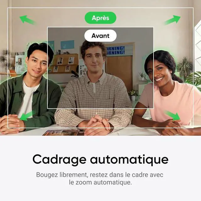 Auto Framing: Insta360 Link 2C automatically zooms and adjusts to keep everyone clearly in sight, whether it' s one person or a group.