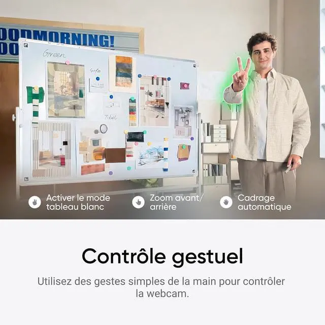 Gesture & Remote Smartphone Control: Control your webcam remotely from your smartphone, or use simple hand gestures to start AI Tracking/Auto Framing, zoom in or out and activate Whiteboard Mode.