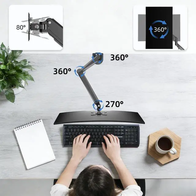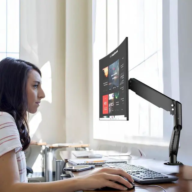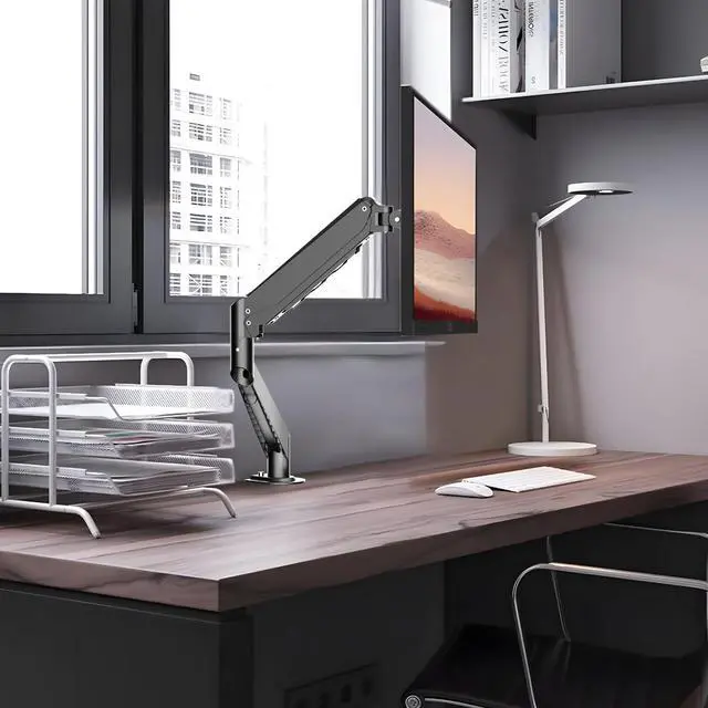 Gas Spring Monitor Arm 32 Inch, Adjustable Single Monitor Desk Mount with Swivel/Tilt/Rotation, Computer Monitors Stand Holder with Clamp/Grommet Mounting Base, VESA Mount Bracket