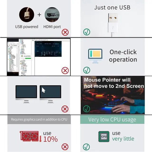 Only Use with single USB-C cableWOWNOVA Computer Temp Monitor only needs the single USB-C cable so it can be mounted completely internally off a usb header without the need of a port on the GPU which is a huge plus to you. No HDMI required, no power required. Mouse will not move to secondary-screen. Low CPU usage.