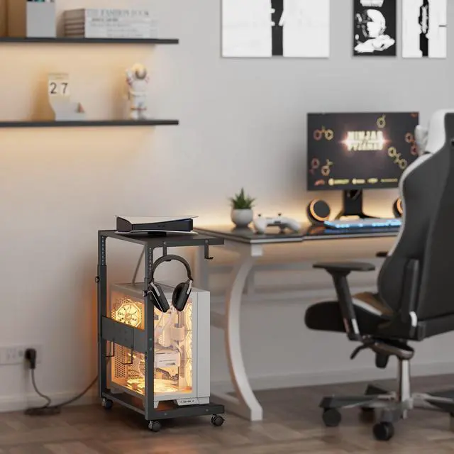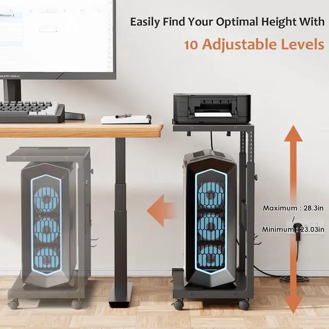 From gamers to professionals, this computer stand adapts to your needs and keeps your space organized, compatible with a wide range of computer tower sizes. What's more, setup is a breeze, and adjusting your stand is as simple as a turn of a dial.