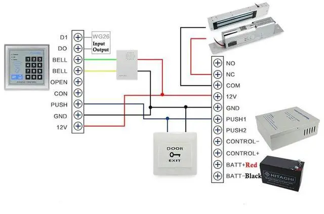 Operative device: E/M Lock, access controller, exit push Button.
