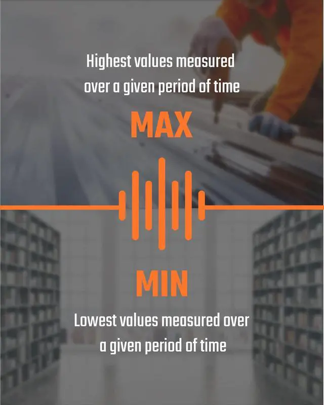 MAX/MIN Value of A-Weighting is Lmax/Lmin (the highest and lowest values measured by the sound level meter over a given period of time.);