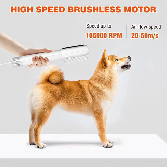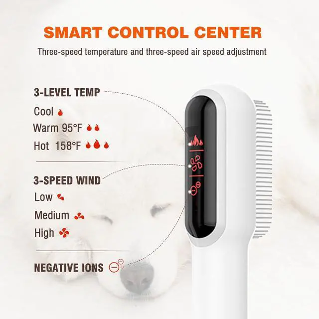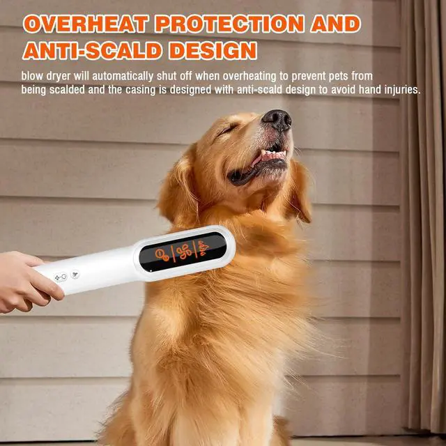 The dryer automatically switches between hot and cold air every 3 seconds to maintain a pet-friendly temperature of 38.9°C