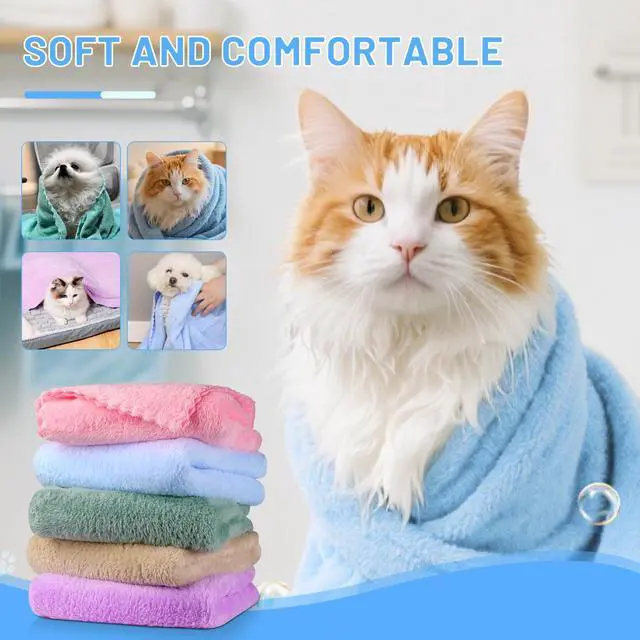 5Pcs Cat Towels Microfiber Pack Bulk, 29.5 x 13.77 inch Quick Drying Absorbent Pet Puppy Towels for Pet Kitten GroomingHair Drying Small Puppy DogBathing Shower for pet Hair Dryer Box