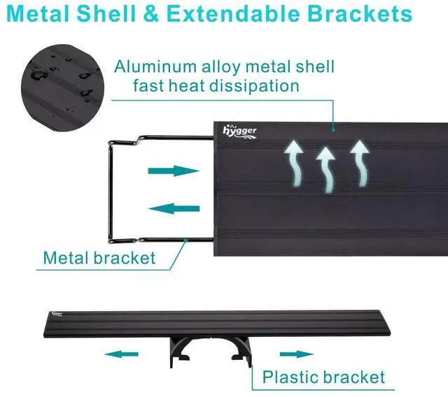- The whole light shell of hygger aquarium light is aluminum alloy metal, nice touch feel, fast heat dissipation.