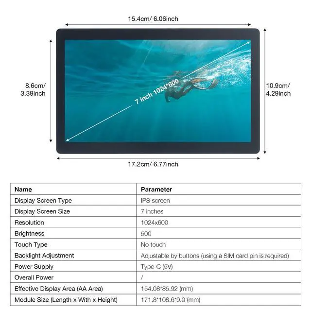 Note: This screen only supports the Windows system. The driver needs to be installed on the computer for the first use. Parameters