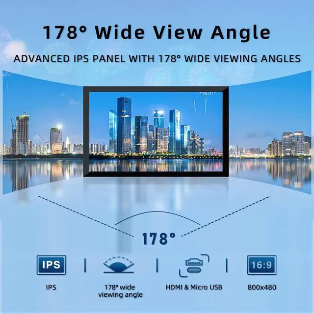• 5-Inch IPS Display: Crisp 800×480 resolution with vibrant colors and 178° wide viewing angles.
