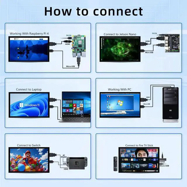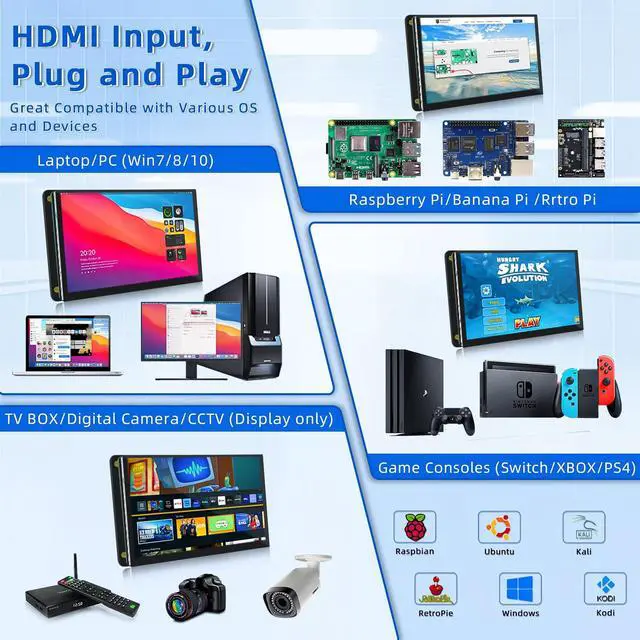• Multi-Device Compatibility: Perfect for Raspberry Pi projects, laptops (as secondary display), PCs, mini-computers, and DIY electronics.