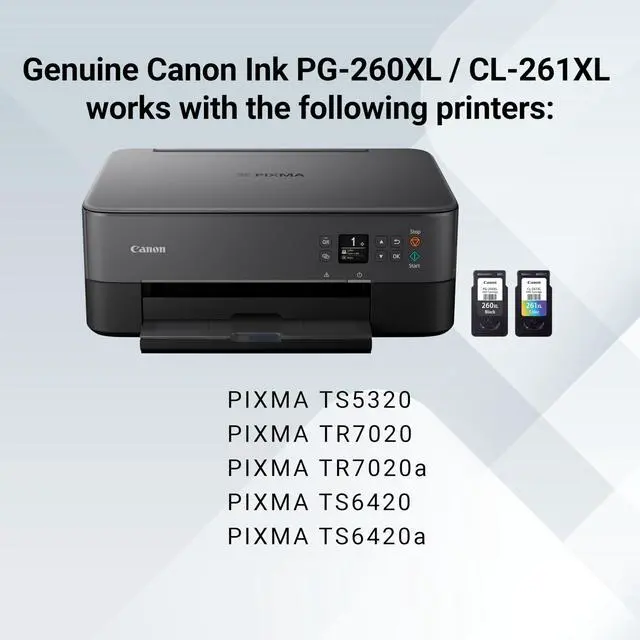 PG-260 XL / CLI-261 XL Genuine Ink Value Pack (2 Cartridges), Compatible with TS5320, TR7020