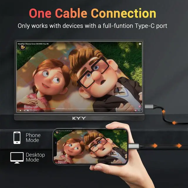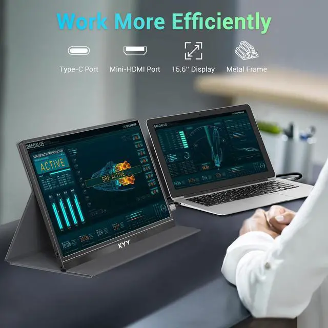 [ 1080P FHD Portable Monitor ]: KYY Portable Monitor sports a 15.6 inch IPS panel with a 1920 x 1080 resolution at 60Hz, 178° viewing angles, a 1000:1 contrast ratio, presents vibrant colors on the screen. The HDR mode and Scene mode supports excellent mainstream transmission so that you can enjoy unprecedented gaming performance, KYY Monitor is ideal for multi-work, gaming, and general use.