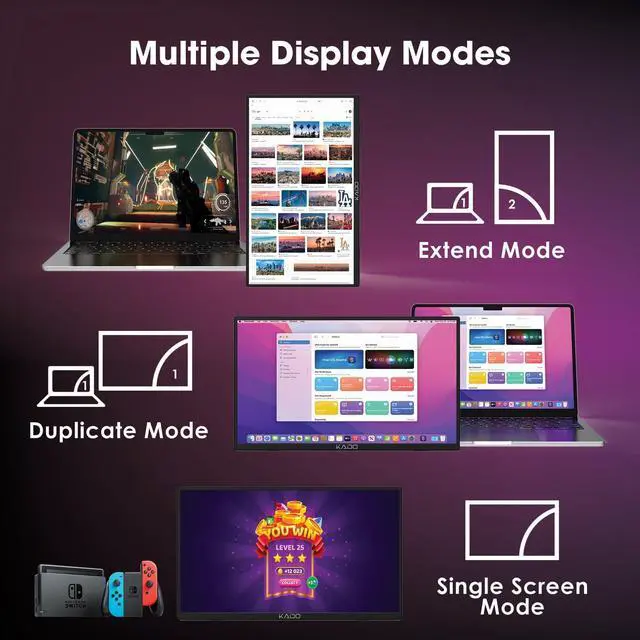 45W USB-C Reverse Charging: With power and display in one, Kado K16 portable monitor keeps your laptop or device powered while you work or play.