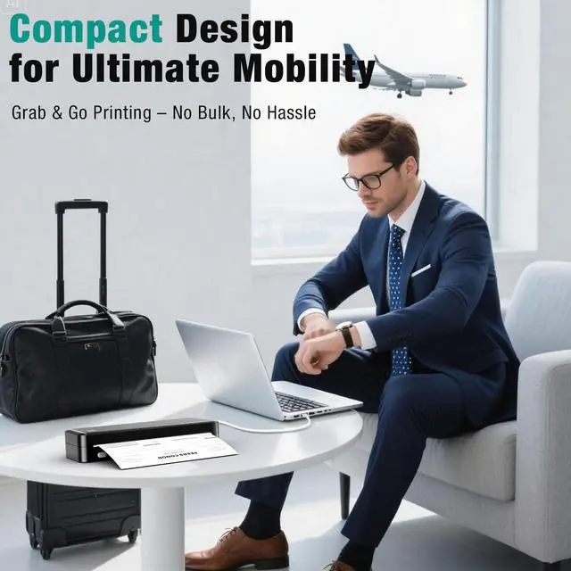 Portable & Lightweight DesignThis portable printers wireless for travel is compact and weighs just 1.51 pounds, easily fitting into a backpack or briefcase. Perfect for on-the-go carrying, it meets mobile printing needs during travel, business trips, work, and studyyour reliable companion for every journey.