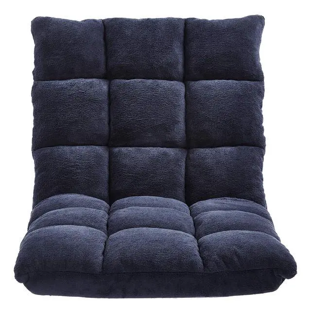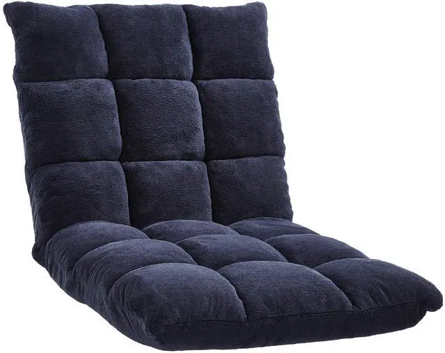 Adjustable 14-Position Memory Foam Gaming Floor Chair with Back Support, Portable, Reclining, Lay Flat, 41.3"D x 21.3"W x 6"H, Navy