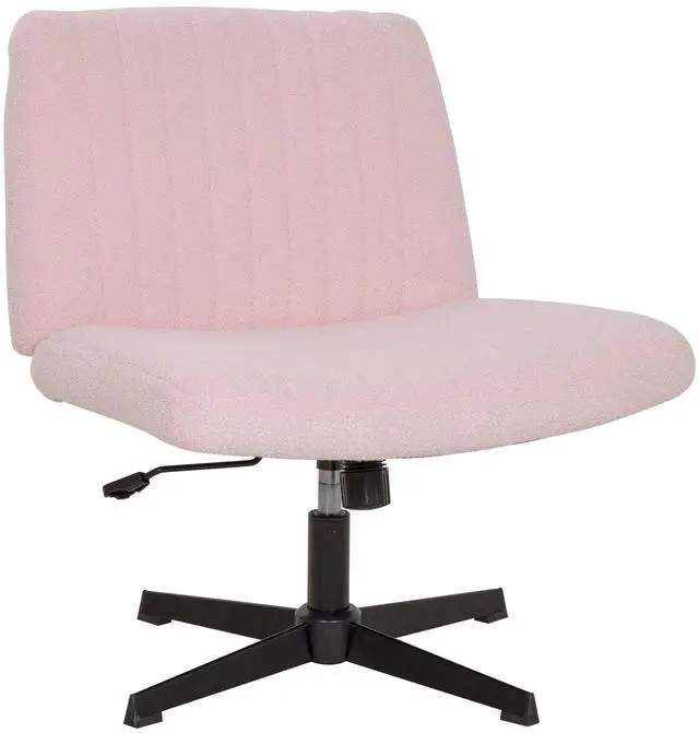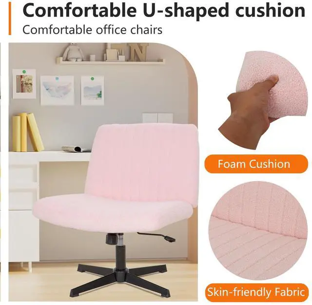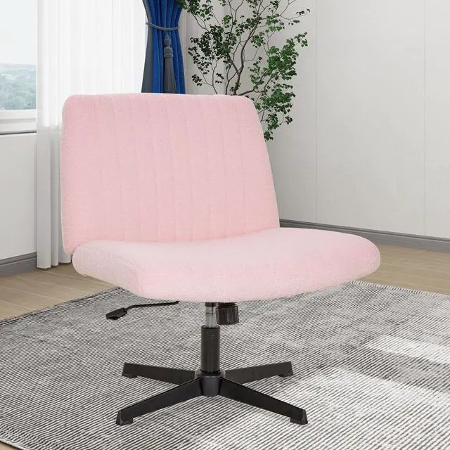 Criss Cross Chair Armless Cross Legged Office Desk Chair Adjustable Swivel Ergonomic Gaming Chair No Wheels Backrest with Wide Seat Native Sponge Computer Task Vanity Chair for Home Office, Pink