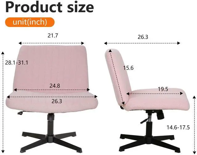 Wide & Soft Seat Size : This cross chair dimensions are H28.1-31.1*W26.3*D26.3 INCH.The seat is wider , allowing users to sit cross-legged.The backrest and seat of this desk chair are padded with high materials and native sponge for a lengthy , comfortable sitting experience.