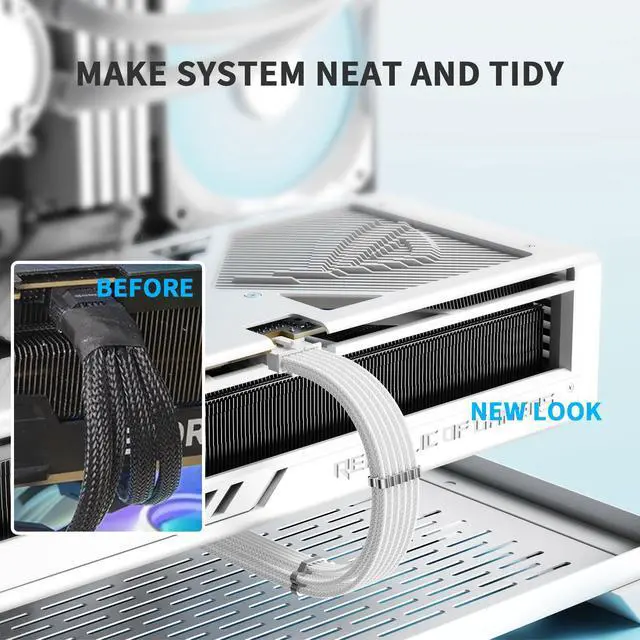 Compatible with ATX 3.1 and ATX 3.0 power supplies, this 16-pin PSU cable ensures direct, stable power delivery without adapters, ideal for demanding GPUs like the RTX 5090 series. The dual-color connectors combine durability with high-temperature resistance (105°C), while the included zinc-alloy and PP combs simplify cable organization.