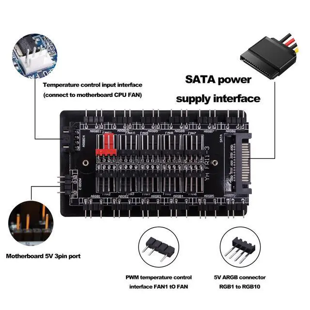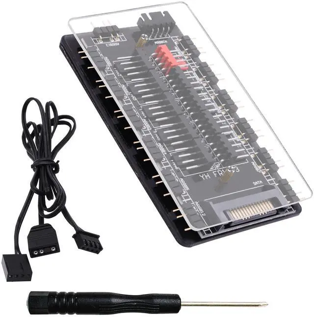 10 Way Sync CPU Cooling Fan Hub RGB Lighting Controller SATA Powered