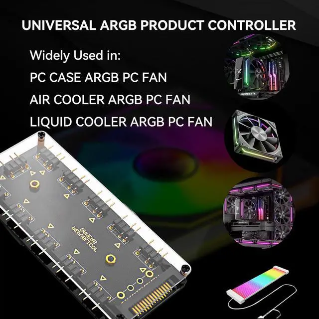 It can simultaneously expand any 5V addressable RGB product while occupying only one RGB on the motherboard.
