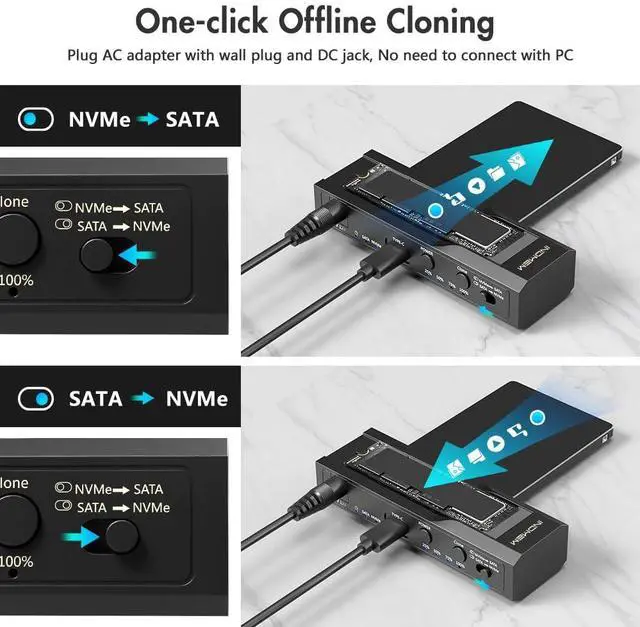 M.2 NVMe Adapter can clone SATA and SSD can clone NVMe when working.