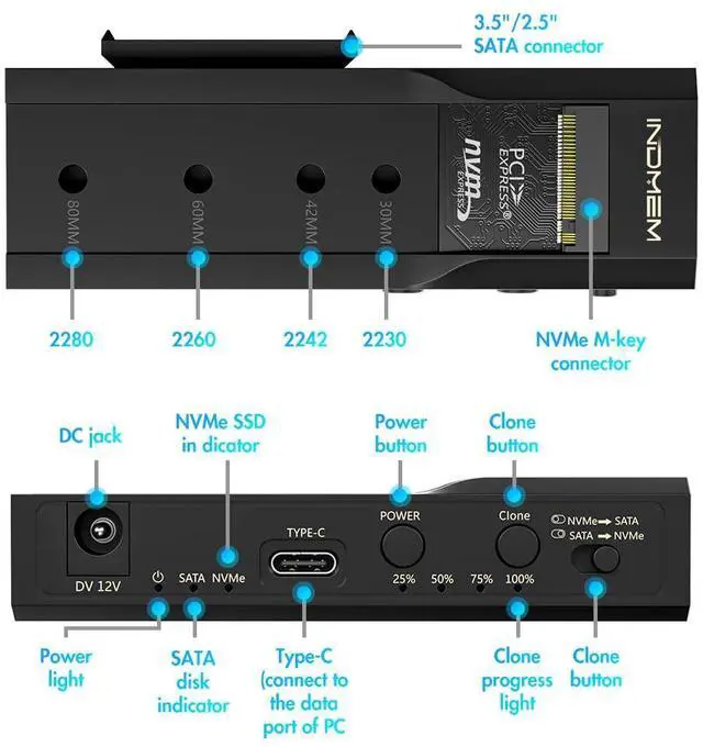 Manually select the clone mode--Supports two-way cloning of SATA SSD and M.2 NVMe SSD