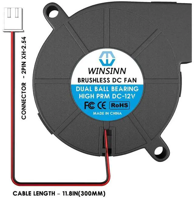 WINSINN 50mm 5015 Blower Fan 12V 7500PRM, 3D Printer 12 volt Fans Blower Turbine Turbo Dual Ball Bearing, 50mmx15mm Brushless High PRM Cooling Blower Fan 2PIN (Pack of 4Pcs)