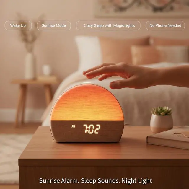 Gentle Sunrise Wake-Up Simulation & 7 Alarm Tones: Paus Pod Mimics natural sunlight to wake you gradually. It brightens over 5-60 minutes before set alarm for a balanced morning routine that supports your bodys circadian rhythm.
