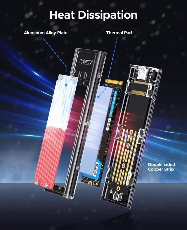 [NVMe M.2 Enclosure] - Based on the high-speed and 10 Gbps master control chip, can support NVME M-KEY M.2 PCI-E SSDs. Sliding closure, tool-free mounting method, wide compatibility, supports UASP TRIM protocol. 10 minutes intelligent sleep function Beneficial heat dissipation extends SSD life