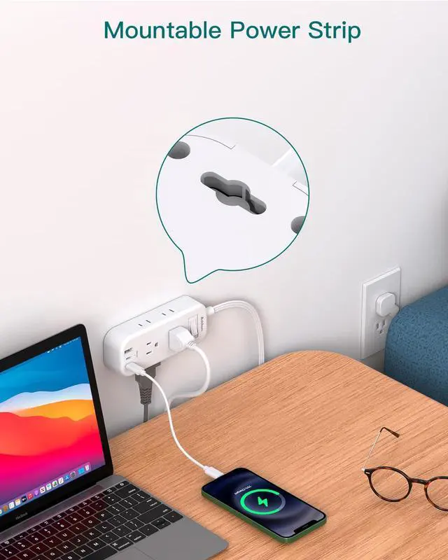 Charging your device with this flat plug power strip. Compact design and slim size, ideal for desktop or bed head for home and office. Having multiple devices working simultaneously, such as phones, tablets, cameras, etc., saves space and keeps your desktop more organized.