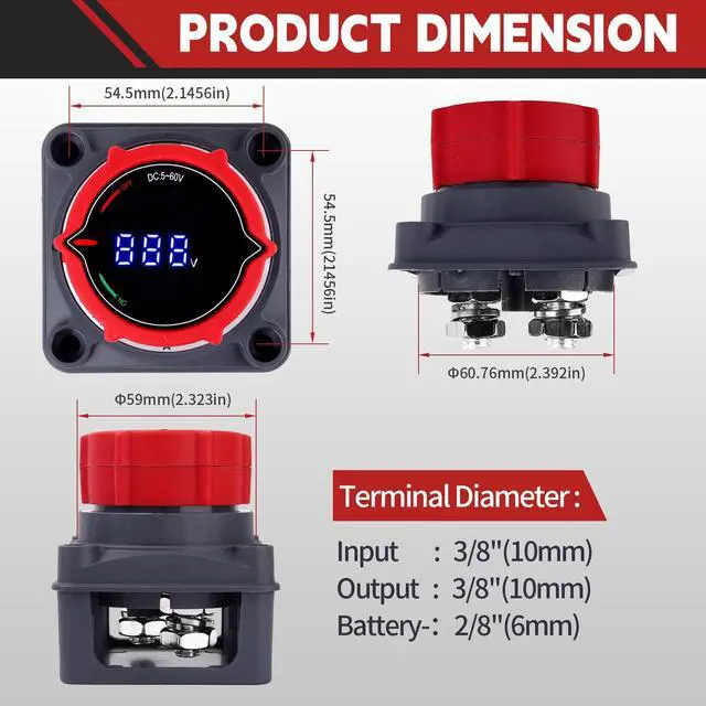 ![]() Upgrade Battery Disconnect Switch with Voltmeter | ![]() Top Post Battery Disconnect Switch with Voltmeter, DC 5-60V Master Iso... | ![]() Upgrade Battery Disconnect Switch with Voltmeter and Terminals | ![]() Upgrade Battery Disconnect Switch with Terminals | ![]() Battery Disconnect Switch with Terminals | |