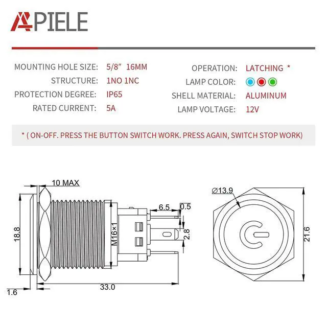 This All Metal Switch Functions Manually As A Replacement Of Auto Refit, Boat Refit, Instruments Apparatus, Enter Guard, Household Appliance. It Provides Solid And Crisp Push Feeling And Comfortable Led Light. Ip65 Waterproof Make It Can Be Used In Humid Environment. Metal shell tolerates vibration and other harsh environmental conditions. The Improved Wire Diagram Come With The Switch And A Non-Electrical Person Can Install It Easy.
