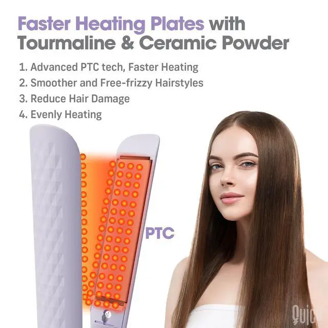 Hair Straightener with Glove & Clips: Quico Hair Straightener Flat Iron offers versatile styling with its Circle 2-in-1 Design. Effortlessly transform your hair into sleek, smooth straight locks. Create salon-worthy hairstyles anywhere, anytime. Our all-in-one tool comes with an anti-scald glove and 2 clips, ensuring safe and convenient styling. Experience the convenience, efficiency, and added protection of Quico Hair Straightener.