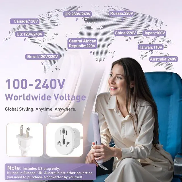 Note for International Use: This hair straightener supports dual voltage (110240V) for worldwide use, but it comes with a US plug. If you're using it in Europe or other regions, please use a suitable plug adapter.