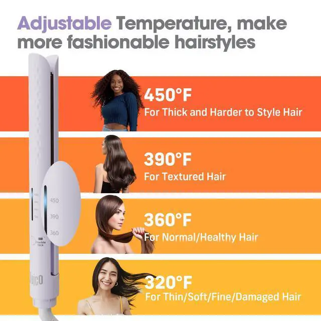 Adjustable Temperature & Wide Voltage Range: With four temperature settings (320/360/390/450), Quico hair straightener can effortlessly create professional and diverse hairstyles. It is a versatile styling tool that can be used worldwide, thanks to its wide voltage range of 110-240V. Whether you're at home, in the office, or on the go, this straightener ensures you always look your best. Take control of your hair and become your own stylist!