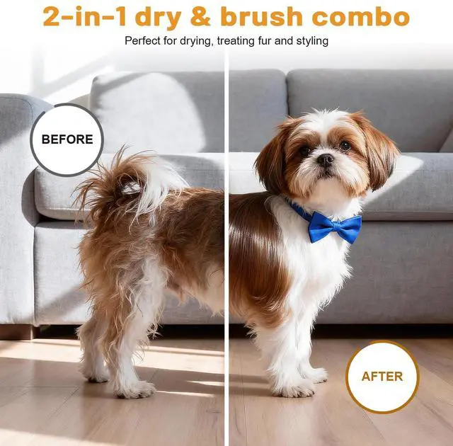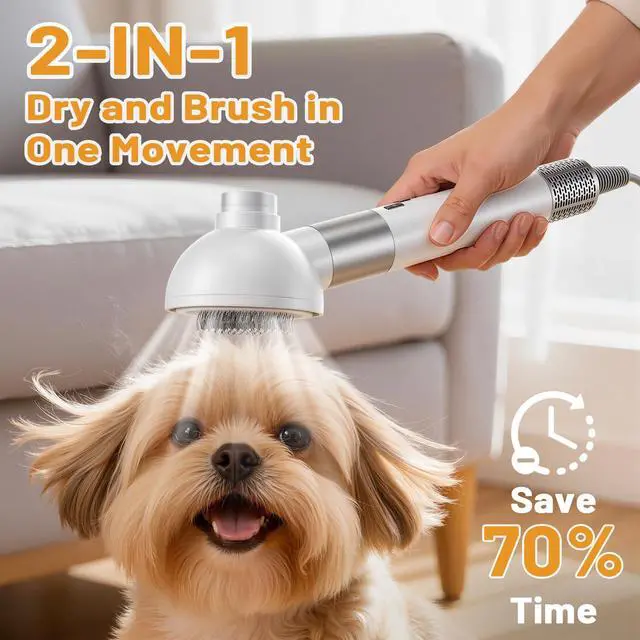2-in-1 Pet Dryer & Brush: Our 2-in-1 dog dryer and grooming brush combines drying and brushing into one effortless step. Save time, reduce mess, and achieve salon-soft fur at homeperfect for post-bath, rainy days, and daily grooming.