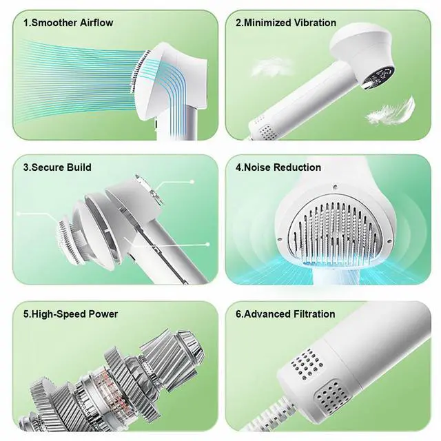 Expert-Designed Fixed Brush Head for a Flawless Finish : Our brush is expertly engineered to gently detangle and smooth the coat as you dry. Its universal design works perfectly on a variety of coat types, delivering a sleek, tangle-free finish without the fuss of changing attachments.