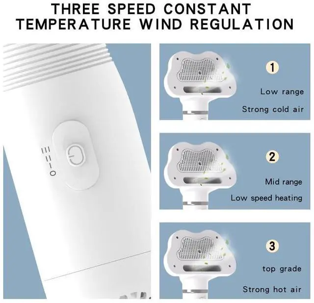 Drying While GroomingAre you always struggled to dry and brush pets hair at the same time after giving him/her a bath? pet dryer is the solution for you, You can easily remover matted hair and tangles from your pets coat while drying, thanks to the creative 2 in 1 design.