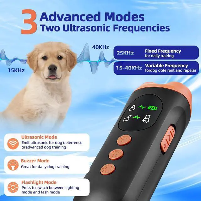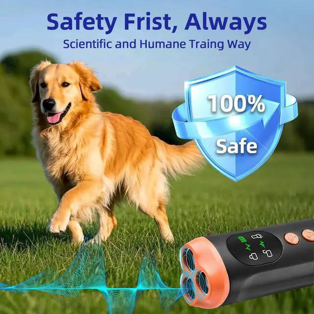 Humane and Safe with User-Friendly Safety Lock: Ultrasonic sounds are harmless and inaudible to humans. One-touch safety lock prevents accidental activation around children or pets. Adjustable multiple modes, including non-startling flashlight and strobe, offer gentle, stress-free training and enhanced personal safety.