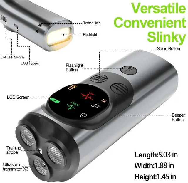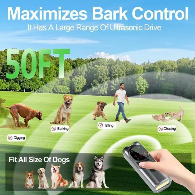 Multi-Function & LED FlashlightThis dog bark deterrent devices are outfitted with a high - powered LED flashlight, perfect for safe nighttime walks. Its designed to fulfill all your training requirements. Whether youre conducting daily training sessions or aiming to correct bad behaviors, this anti - barking device for dogs gets the job done. Different frequencies suit different dogs. No more getting exasperated by barking. Just relish the tranquility!