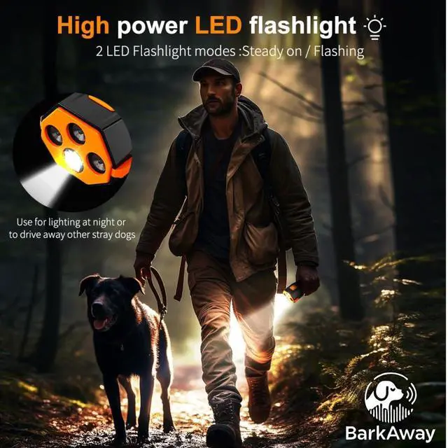 Versatile Training Modes with LED Flashight: These dog barking deterrent devices include four functioning modes, with 3 ultrasonic transmitters and an integrated LED flashlight for day or night usage. The range of settings provides more flexibility and wider range during training, depending on your dog's response and the surrounding environment.