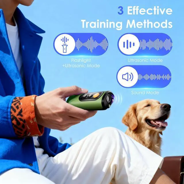 Smart Behavior Correction This training device combines ultrasonic cues, command whistle tones, and behavior-guiding functions to make daily training easier. With targeted acoustic prompts, it helps your dog naturally correct unwanted behaviors. Its not only effective for reducing excessive barking but also helps address common issues such as chewing on furniture, digging in the yard, and jumping on people.