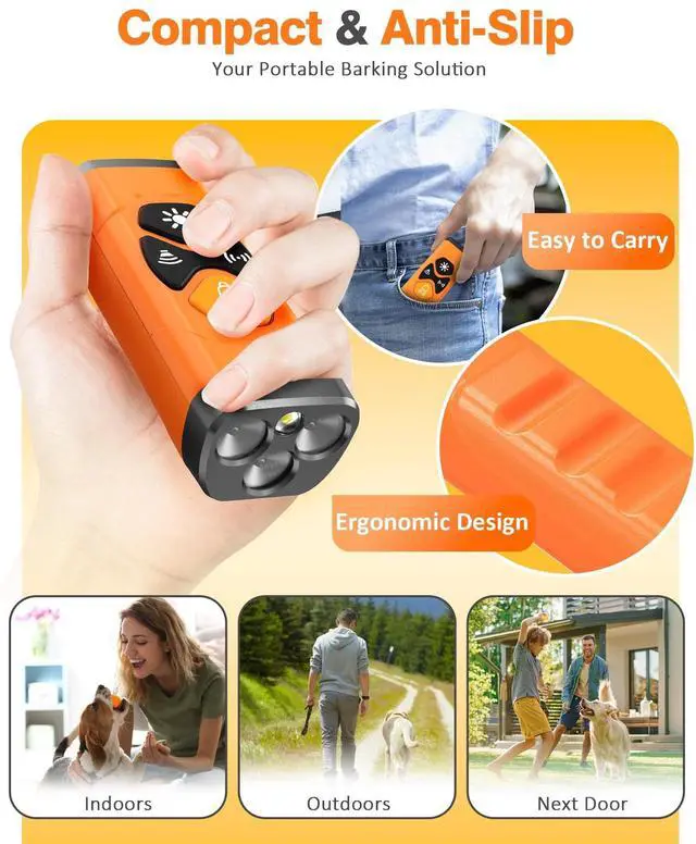 3X ENHANCED EFFECTIVENESS & LONG RANGE: With 3 high-performance sonic emitters, our dog bark deterrent devices deliver triple the barking control power compared to single-emitter models. Safer than shock collars and more effective than whistles. It reaches up to 23 feetsuitable for managing your and neighbors' dogs