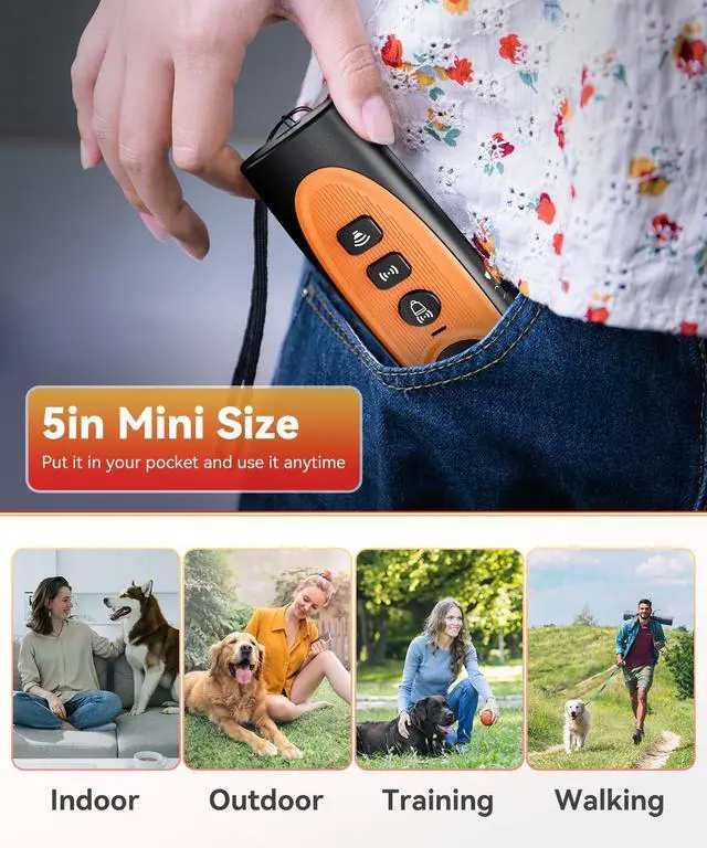 FOUR TRAINING MODES adapt to your dog: Beep, Ultrasonic, Ultrasonic + LED, or LED flashlight. Use beep to mark, ultrasonic as a dog barking silencer during dog training, and light for night safety. Works like a dog whistle and the simplest stop barking dog deviceswithout discomfort