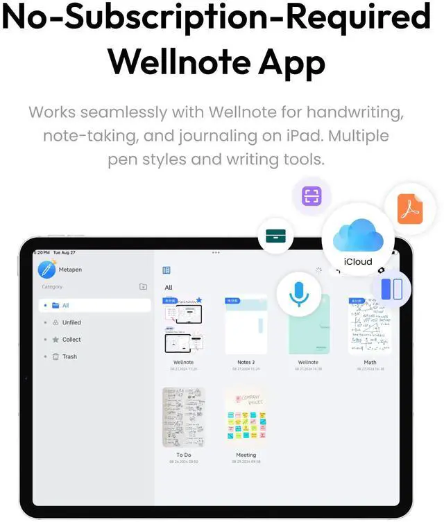 2X Faster Charge: Metapen Pencil A8 fully charges in just 30 minutes via USB-C and lasts up to 10 hours. 1-min charge = 50-min use; 4-min charge = 2-hour use. The LED indicator displays different colors based on battery level, reminding you to recharge in time. It automatically shuts down after 5 minutes of inactivity for better energy efficiency