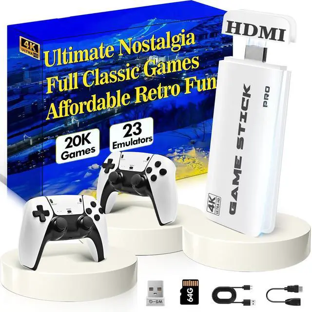 Retro Gaming Console with 4K 20000+ Classic Games, HDMI Game Stick with 23 Emulators, Plug and Play Retro Game Console with Dual 2.4GH z Controllers, Nostalgic Fun for All Ages, 64G (64, GB)