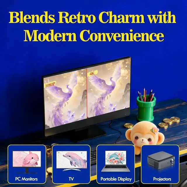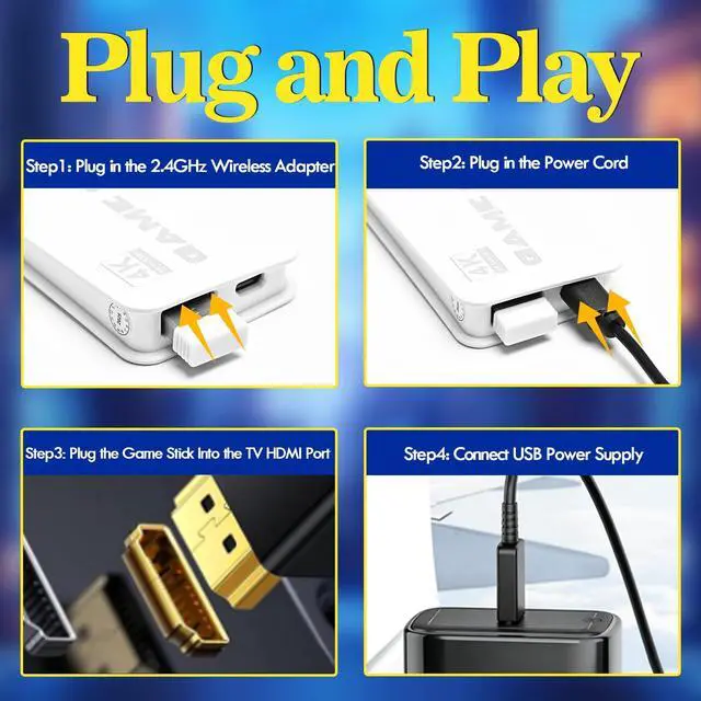 & - :Enjoy crisp,clear visuals with 4K HDMI output on modern device,this retro game stick supports multiplayer with 2 responsive 2.4GHz controllers.Ideal for family nights,friends gatherings or casual solo play after work.