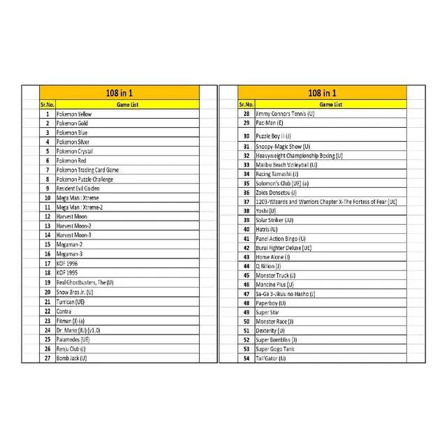 New and high quality. Compatible for both US/EU/JAP versions console. RPG games can be saved by the battery inside, But Action games have no saving function. 108 in 1. GBC games can't play on the GB game console.