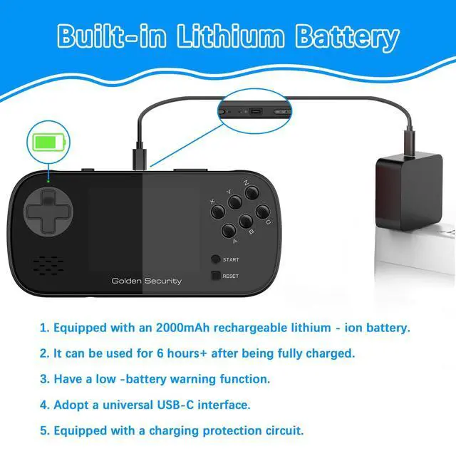 Long-Lasting Battery Life: Equipped with an 2000mAh rechargeable lithium-ion battery, the console supports extended uninterrupted play, making it perfect for travel, outdoor use, or everyday entertainment without the hassle of frequent charging or battery replacement.